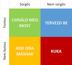 De most bővítem a válaszrepertoárom. Tessék, itt az Eisenhower mátrix. Hogy mi micsoda benne?