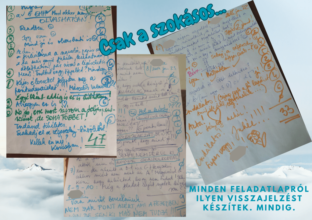 - hiszen egy-egy feladatlapot kiértékelünk, szövegesen is, és elmagyarázzuk, miért érdemes a már megírt feladatlapokon gyakorolni és nem a külön megvásároltakon