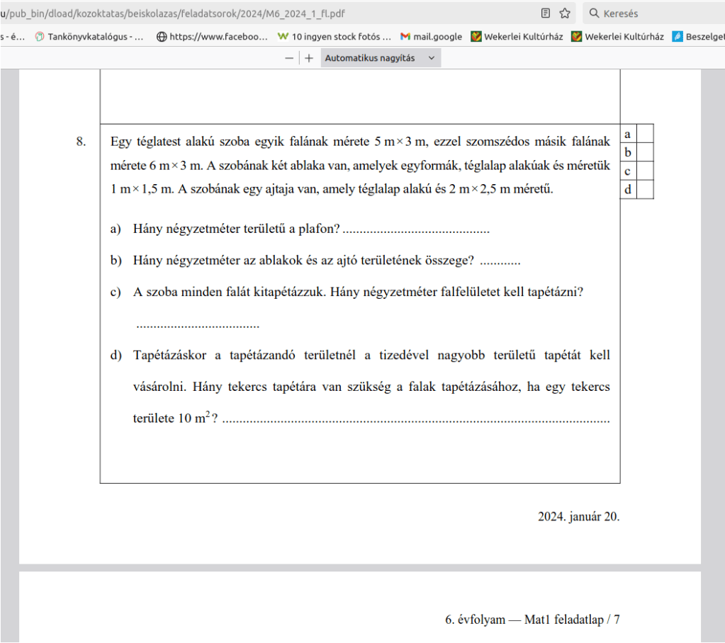 Újraolvastattam velük a feladat releváns részeit. Akkor jött a “lecsempézés”. Aztán a felismerés! A fal, azt jelenti hogy a szoba fala!