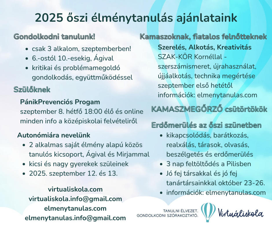 2025. szeptember 18. csütörtök 15:30 – 17:00 Virtuáliskolában, élőben.